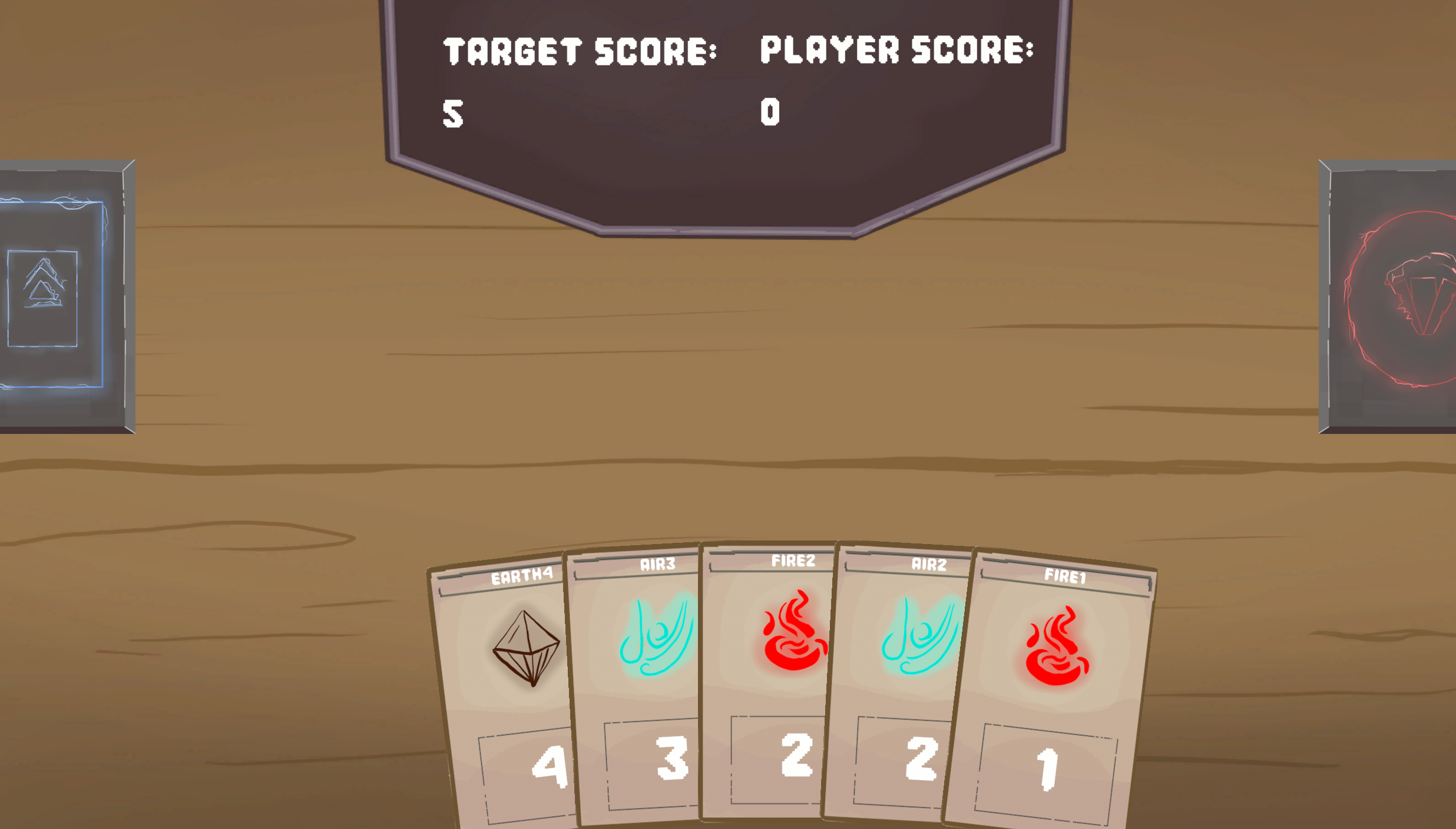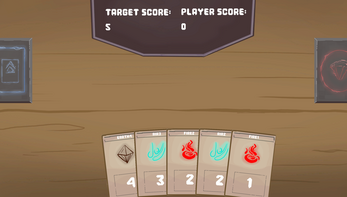 Each round the player is given a target score to meet or beat. Players can drag cards from their hands to the blue stone to play a card and increase their score.